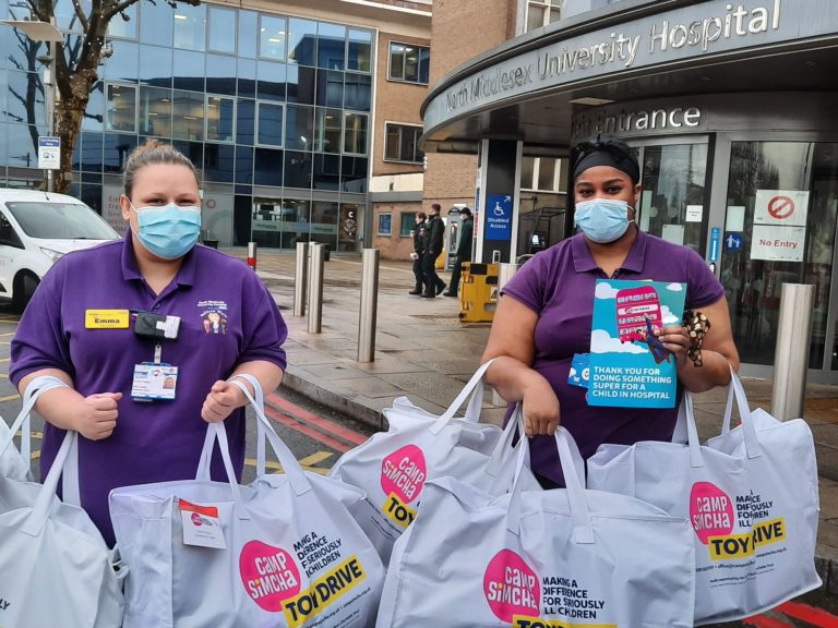 Each year Jewish primary schools, nurseries, Chederim, youth groups and synagogues take part in the Camp Simcha Toy Drive. We deliver over 10,000 toys to children in over 120 hospital wards and hospices.