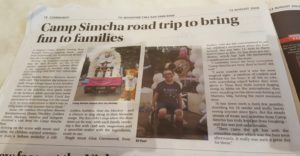 “I suddenly heard the boys screaming ‘Camp Simcha are here, they’re here’,” she said. “I went outside and it was the most magical sight – a rainbow of confetti and balloons for the boys. It all felt so safe, with everything wiped before they were given it. Then they both started singing along to Abba on the microphone; they were standing on the drive way belting out Mamma Mia, having the most awesome time.